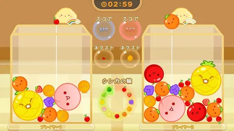 画面に中央に、お互いのアタックゲージが表示されています。 ## スイカゲーム・2人プレイのオンライン対戦モードは2024年春予定