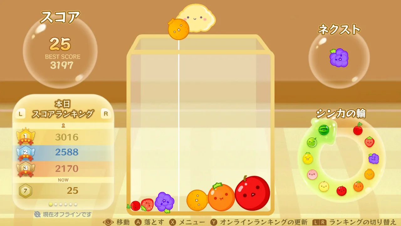 このゲームは基本的に果物同士を進化していくゲームなので、ぷよぷよやテトリスと違い、
