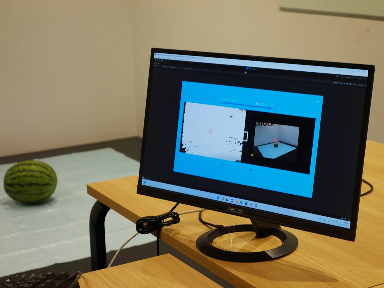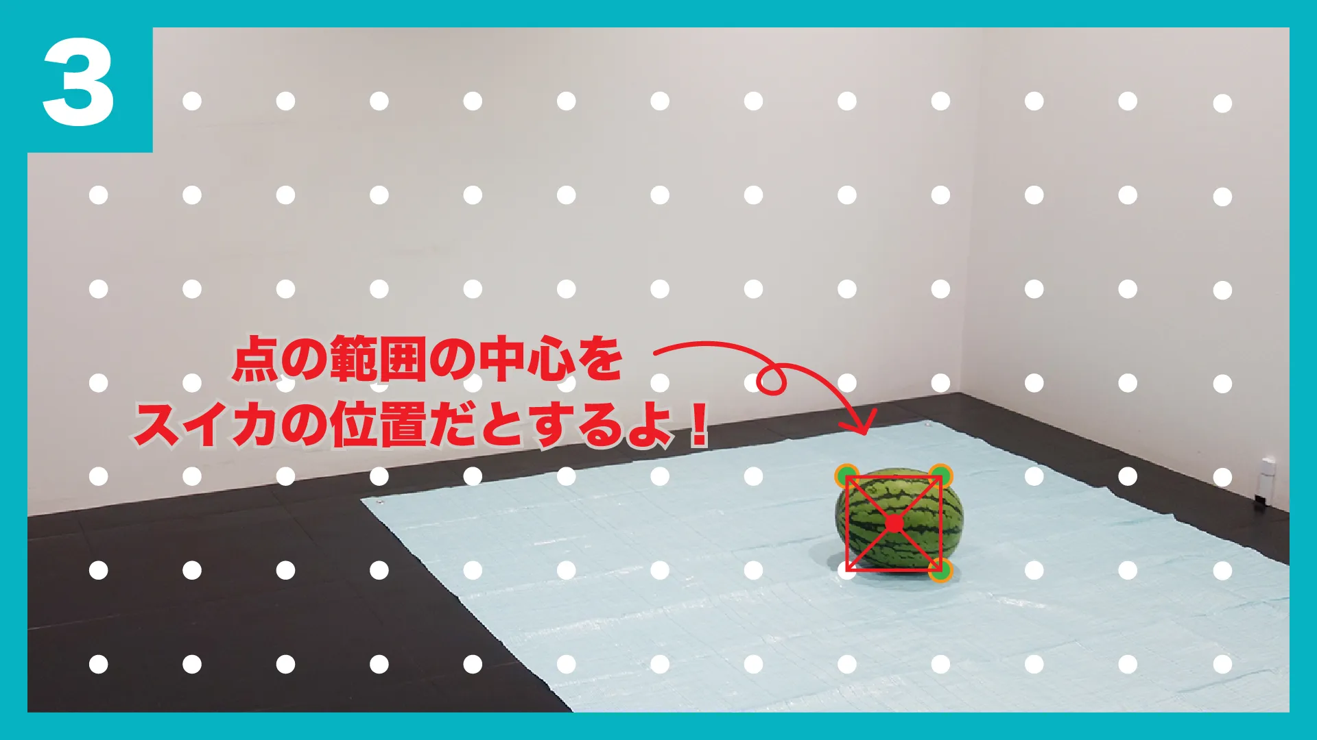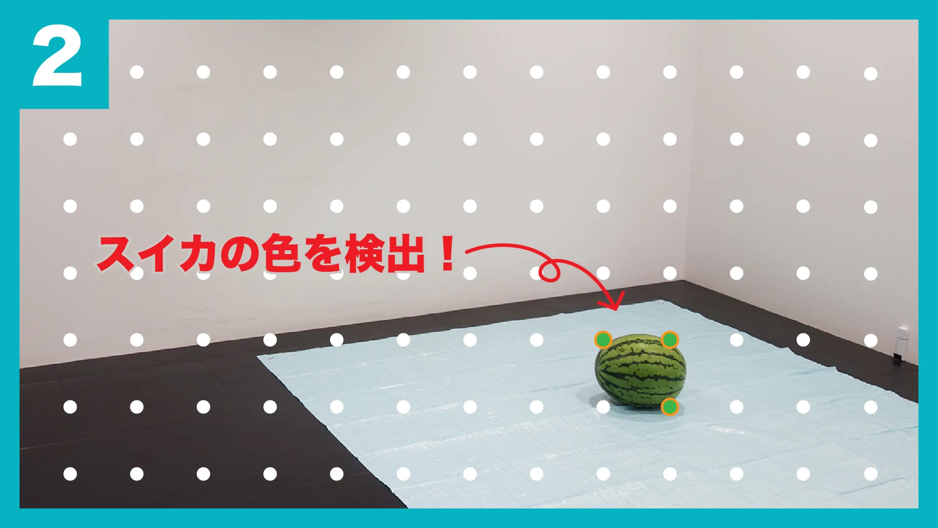 そして中心だった場合、今度はDepthカメラが映すスイカの色を頼りに、前後の位置を合わせます。