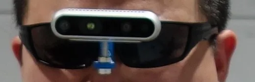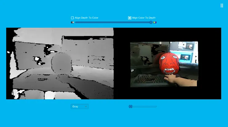 これは通常のWebカメラのように映像を撮影しつつ、カメラからの「距離」も測れるデバイス。このような感じで、カメラから近くにあるものは青く、遠くにあるものは赤く表示することができます。