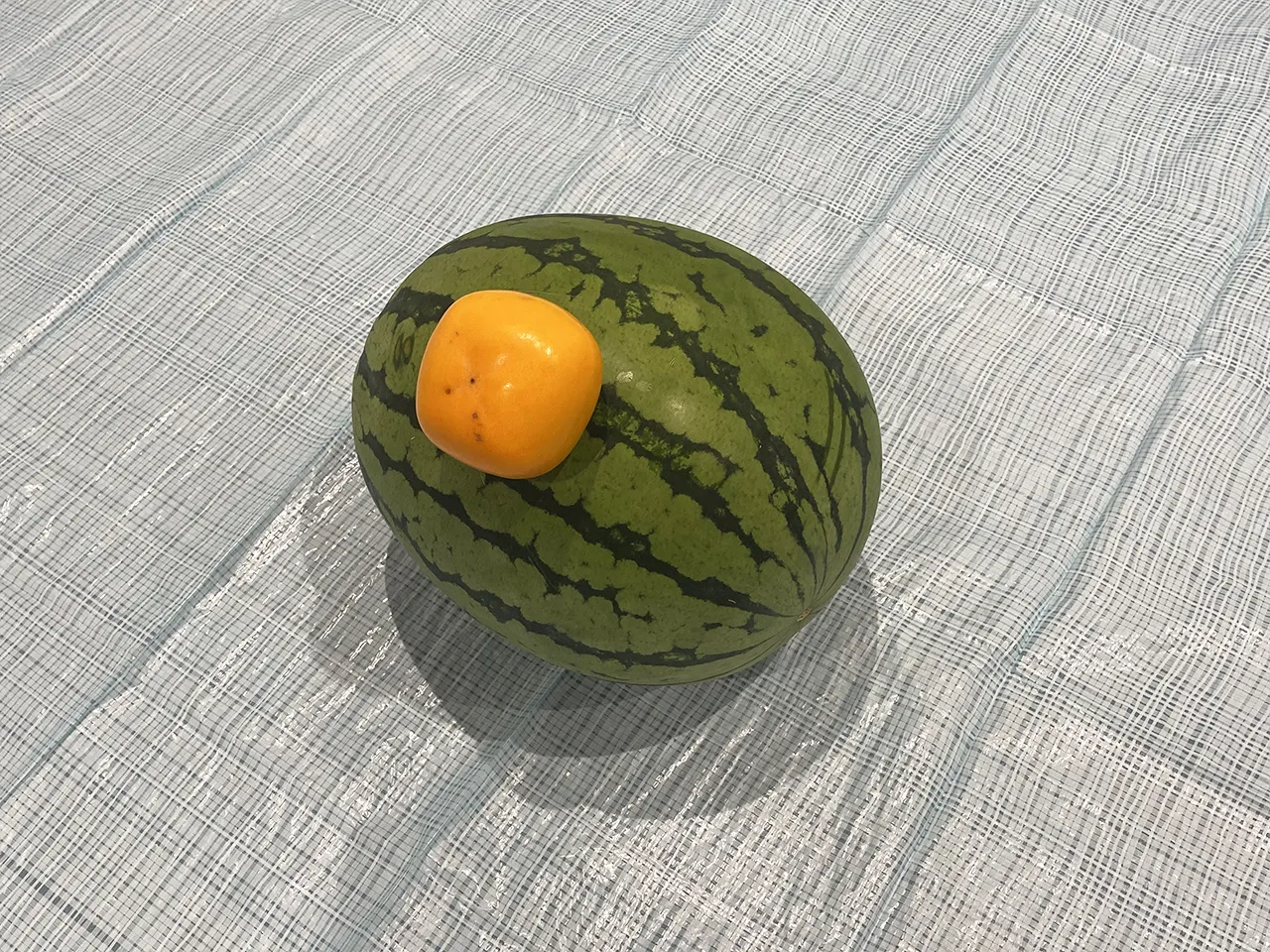 まだ作業中なので、スイカの代わりに愛らしいクッションで代用しました。